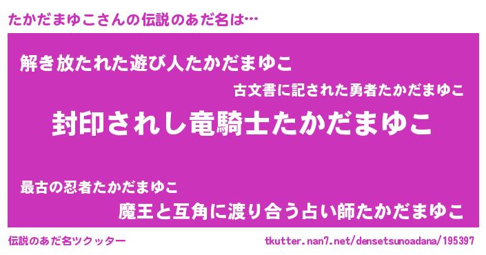 | 女子向けラノベタイトル風あだ名 | 『たかだまゆこの玉の輿計画!』 |