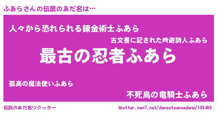 | 意味不明あだ名 | 『ふあらフォーエバー』『自称ふあら』 |
