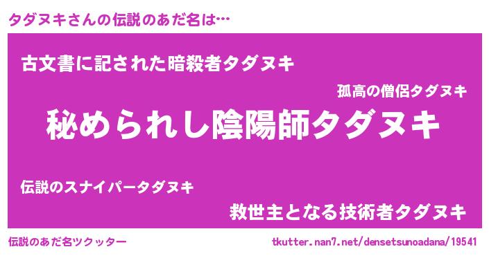 | 男性向けラノベタイトル風あだ名 | 『タダヌキスレイヤー』 |