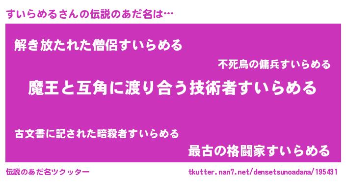 | ヒーロー風カッコイイあだ名 | 『愛の使者すいらめる』『幻影騎士スイ』 |