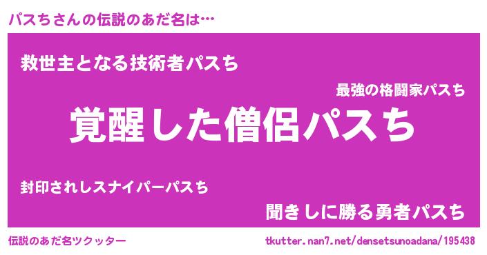 | 意味不明あだ名 | 『とにかく怪しいパスち』 |