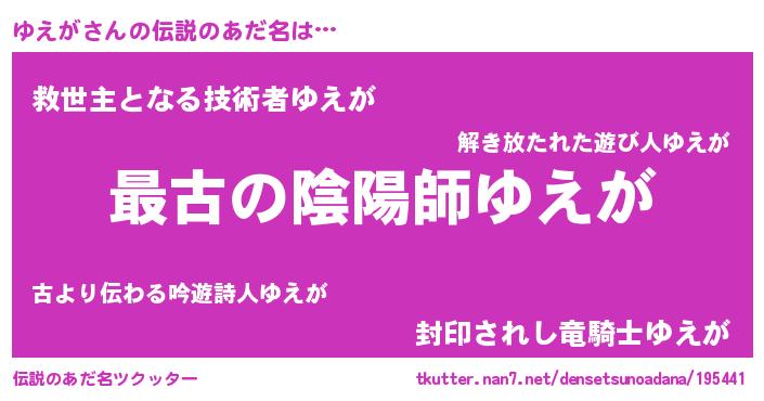 | ヘコむあだ名 | 『なまこ酢』『ゆえにゅー』『ゆえを』 |