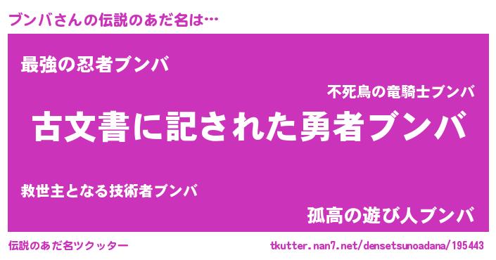 | 意味不明あだ名 | 『永久保存ブンバ』『ヨモギ科ブンバ属』 |