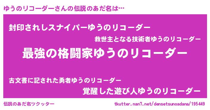 | 意味不明あだ名 | 『ゆうのリコーダーフォーエバー』 |