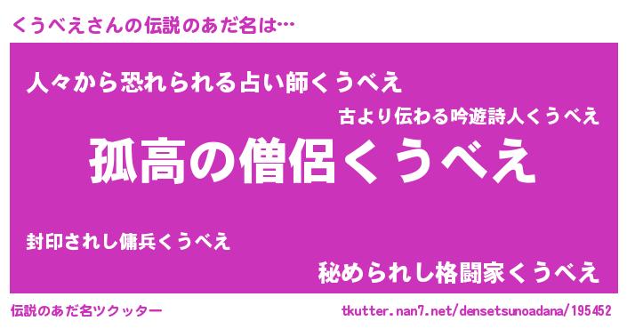 | 意味不明あだ名 | 『とにかく怪しいくうべえ』 |