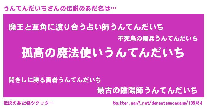 | 意味不明あだ名 | 『住所不定無職うんてんだいち(12歳)』 |