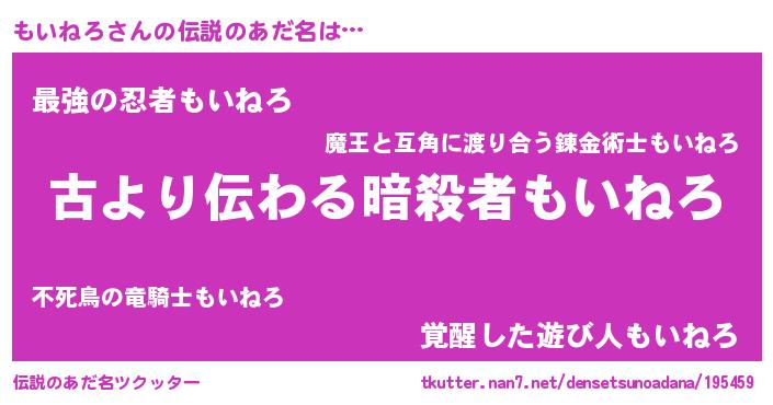 | 意味不明あだ名 | 『永久保存もいねろ』『自称もいねろ』 |
