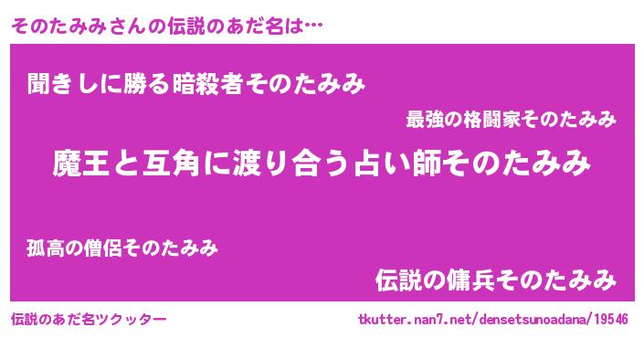| 意味不明あだ名 | 『自称そのたみみ』『永久保存そのたみみ』 |