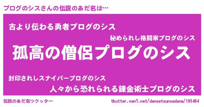 | 胡散臭い通販商品みたいなあだ名 | 『信頼と実績のネックレス…その名も「プログのシス」』 |