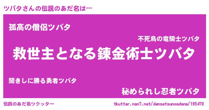 | ヒーロー風カッコイイあだ名 | 『天空の使者ツバタ』『仮面ツバダー』 |