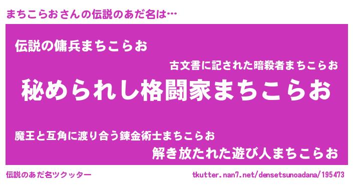 | 意味不明あだ名 | 『住所不定無職まちこらお(5歳)』 |