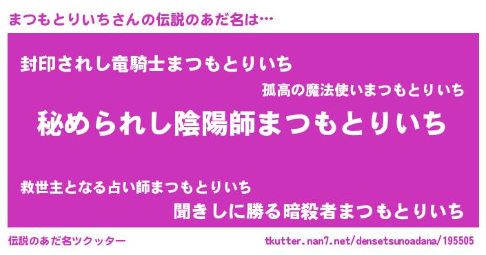 | 女子向けラノベタイトル風あだ名 | 『まつもとりいちの雑貨屋さん』 |