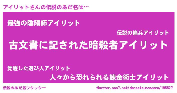 | 意味不明あだ名 | 『永久保存アイリット』『自称アイリット』 |