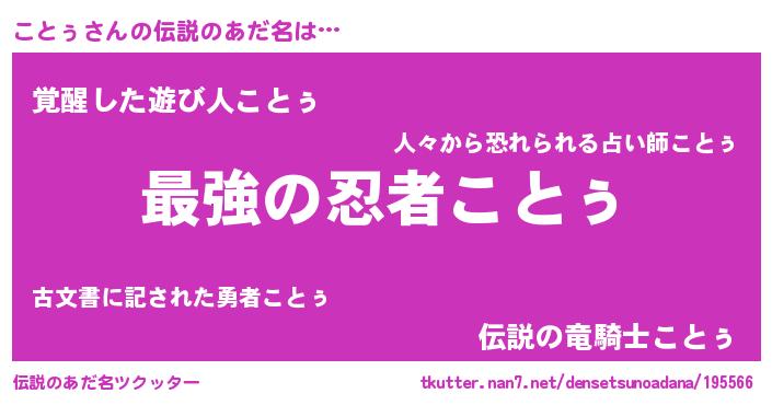 | ヒーロー風カッコイイあだ名 | 『仮面コトダー』『ウルトラことぅマン』 |