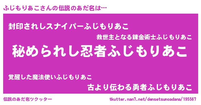 | 意味不明あだ名 | 『めかぶ科ふじもりあこ属』 |