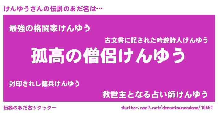 | ヒーロー風カッコイイあだ名 | 『魔戒騎士ケン』『ウルトラけんゆうマン』 |