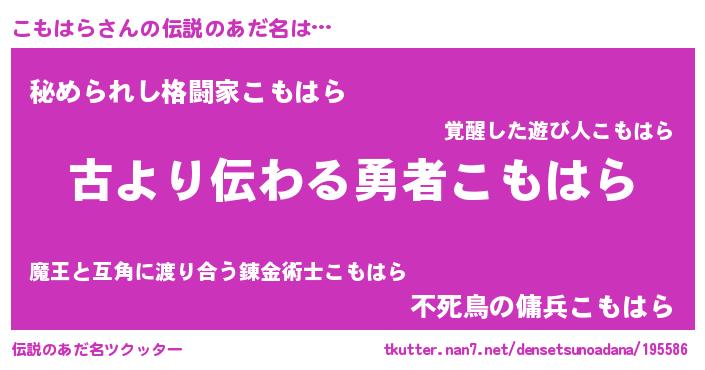 | 胡散臭い通販商品みたいなあだ名 | 『来世でも幸せになれる水素水…その名も「こもはら」』 |