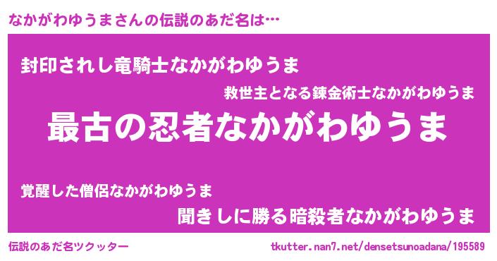 | 意味不明あだ名 | 『なかがわゆうまフォーエバー』 |