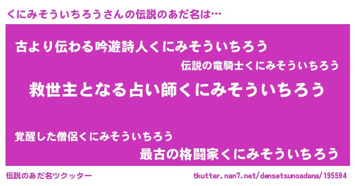 | 意味不明あだ名 | 『住所不定無職くにみそういちろう(62歳)』 |