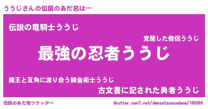 | 男性向けラノベタイトル風あだ名 | 『ううじに滅ぼされるだけの簡単なお仕事です』 |