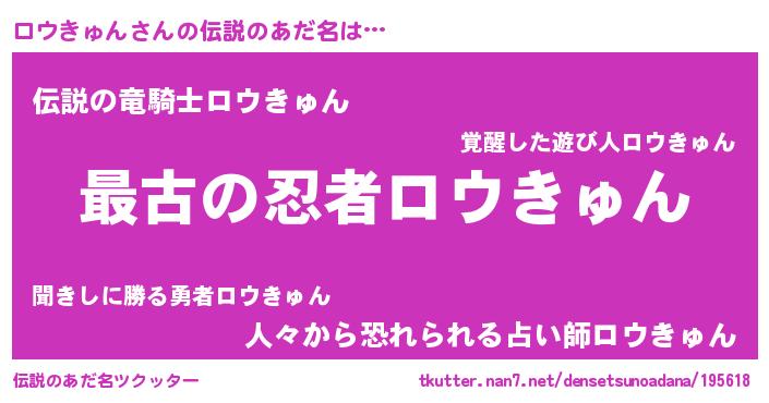 | ファンタジー風あだ名 | 『エターナルロウキュンー』『ロウフェル』 |