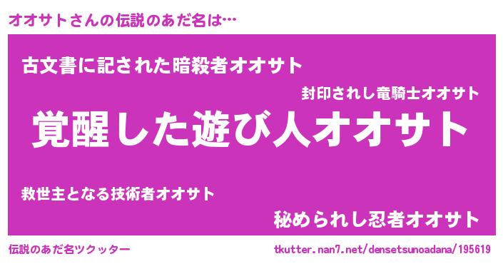 | ヒーロー風カッコイイあだ名 | 『天弓騎士オオ』『ウルトラ戦士オオサト』 |