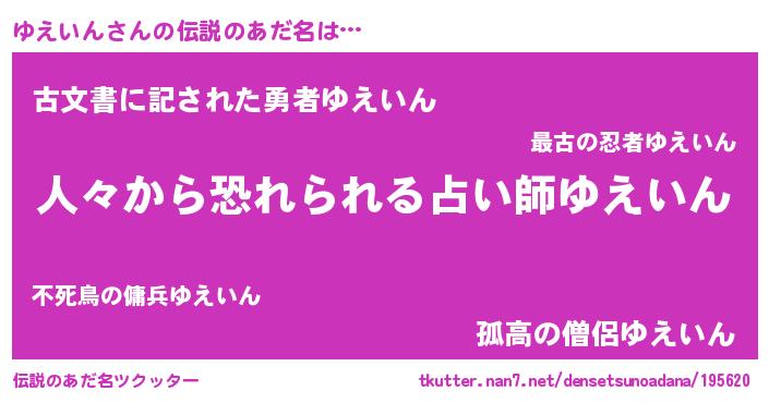 | 男性向けラノベタイトル風あだ名 | 『ユエインスレイヤー』 |