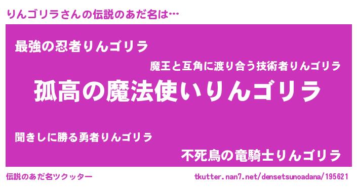 | 胡散臭い通販商品みたいなあだ名 | 『信頼と実績のサプリメント…その名も「りんゴリラ」』 |