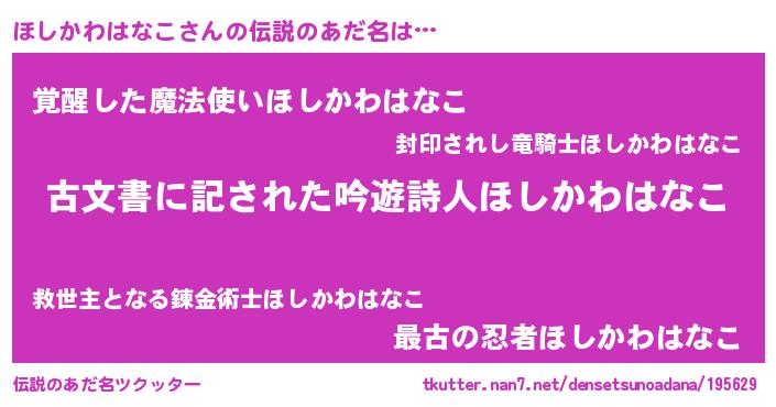 | ヘコむあだ名 | 『ほしかわはなこ(小並感)』『ほしお』 |