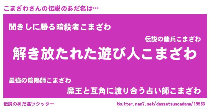 | 意味不明あだ名 | 『とにかく怪しいこまざわ』 |