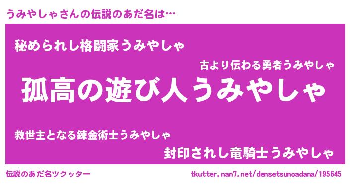 | 意味不明あだ名 | 『住所不定無職うみやしゃ(71歳)』 |