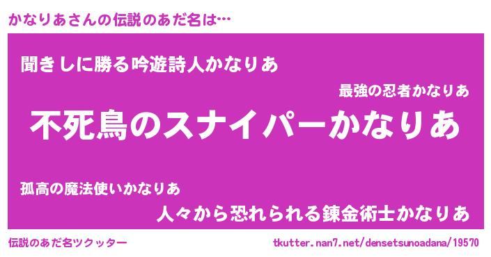 | ヘコむあだ名 | 『かなっふぃ~』『かなりあ(小並感)』 |