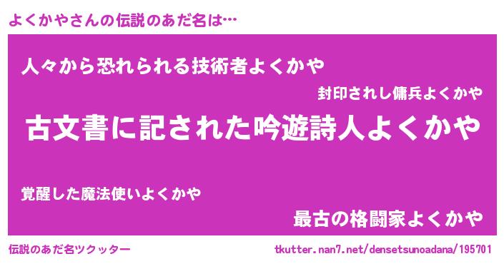 | ファンタジー風あだ名 | 『ヨクディッシュ』『クインヨット』 |