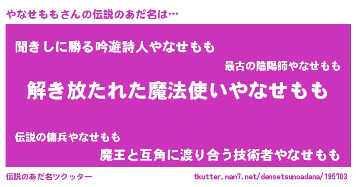 | ポケモン風あだ名 | 『ヤーナイ』『ヒヤナセモモ』 |