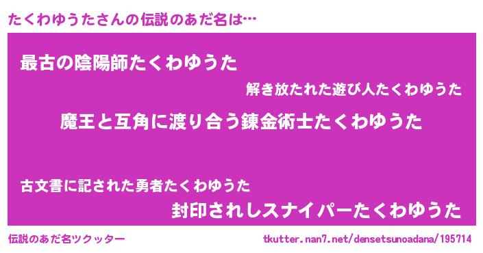 | ヒーロー風カッコイイあだ名 | 『愛の使者たくわゆうた』『仮面タクダー』 |
