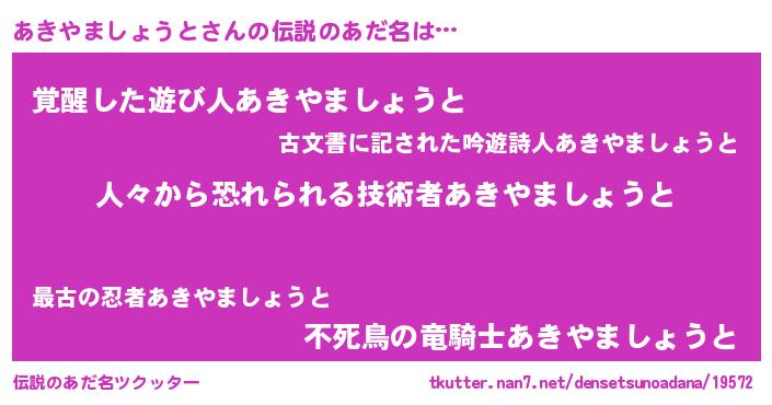 | 意味不明あだ名 | 『住所不定無職あきやましょうと(8歳)』 |