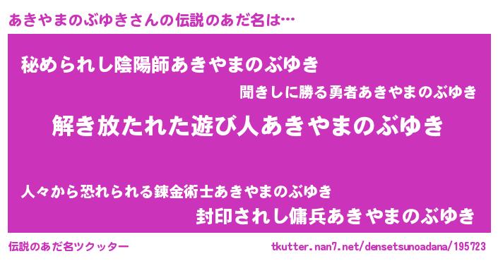 | 意味不明あだ名 | 『とにかく怪しいあきやまのぶゆき』 |