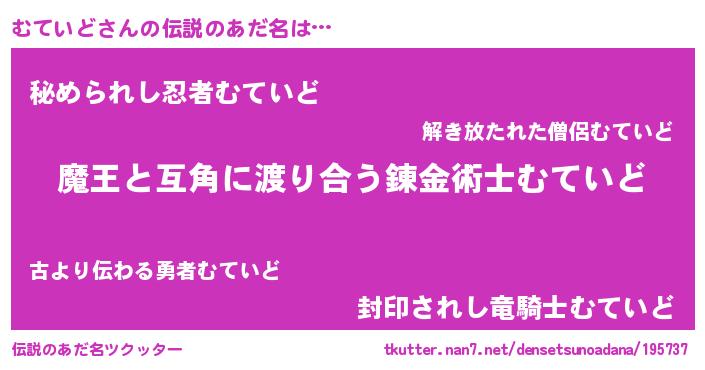 | ヒーロー風カッコイイあだ名 | 『仮面ムテダー』『正義の使者むていど』 |