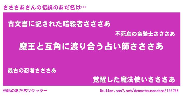 | ヒーロー風カッコイイあだ名 | 『愛の使者さささあ』『仮面ササダー』 |