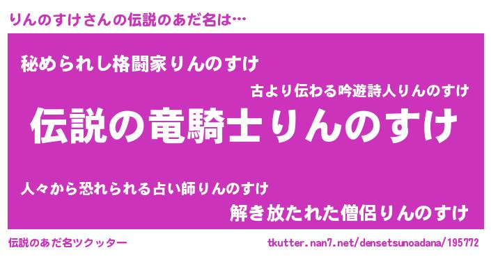 | 胡散臭い通販商品みたいなあだ名 | 『必ず成功するブレスレット…その名も「りんのすけ」』 |