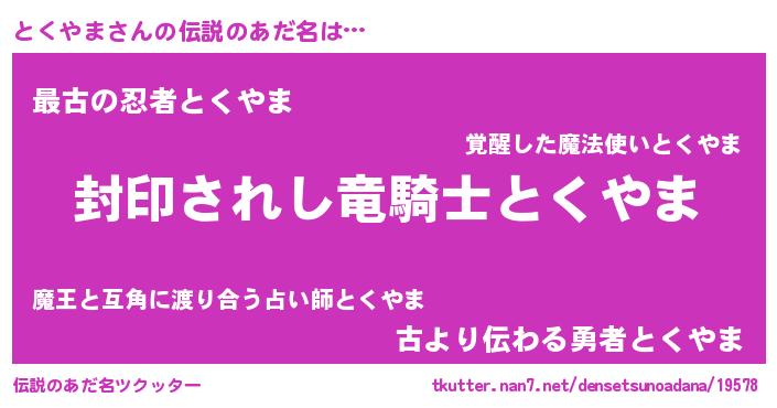 | ヒーロー風カッコイイあだ名 | 『スーパートクヤマ』『ネオトクヤマ』 |