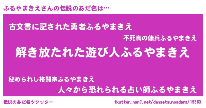 | 意味不明あだ名 | 『とにかく怪しいふるやまきえ』 |