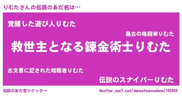 | ヒーロー風カッコイイあだ名 | 『天空の使者りむた』『天弓騎士リム』 |