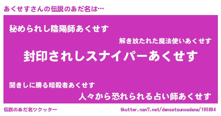 | ファンタジー風あだ名 | 『アクフェル』『エターナルアクセスー』 |