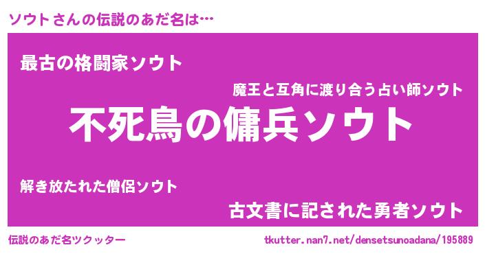 | ファンタジー風あだ名 | 『ソウフェル』『エターナルソウトー』 |