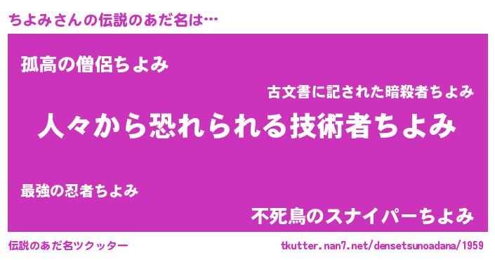 | 肩書あだ名 | 『ちよみ助教授』『ちよみマネージャー』 |