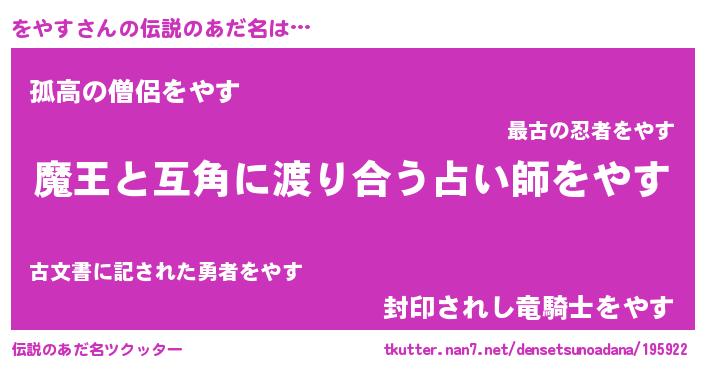 | ヒーロー風カッコイイあだ名 | 『愛の使者をやす』『ウルトラ戦士ヲヤス』 |