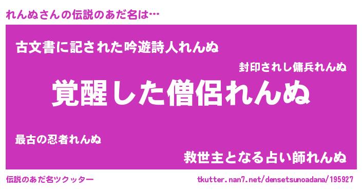 | 意味不明あだ名 | 『とにかく怪しいれんぬ』『自称れんぬ』 |