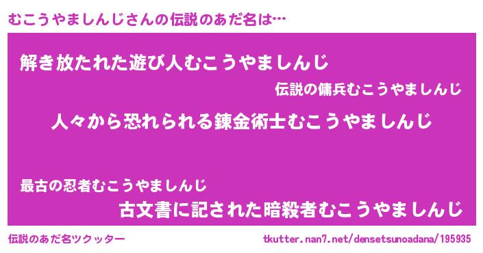 | ヒーロー風カッコイイあだ名 | 『正義の使者むこうやましんじ』 |
