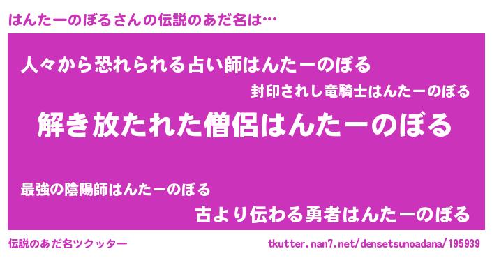 | 意味不明あだ名 | 『とにかく怪しいはんたーのぼる』 |
